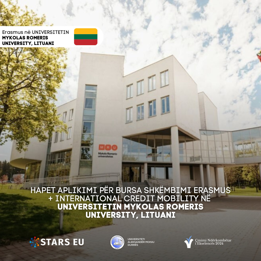 HAPET APLIKIMI PËR BURSA SHKËMBIMI ERASMUS + INTERNATIONAL CREDIT MOBILITY NË UNIVERSITETIN MYKOLAS ROMERIS UNIVERSITY, LITUANI