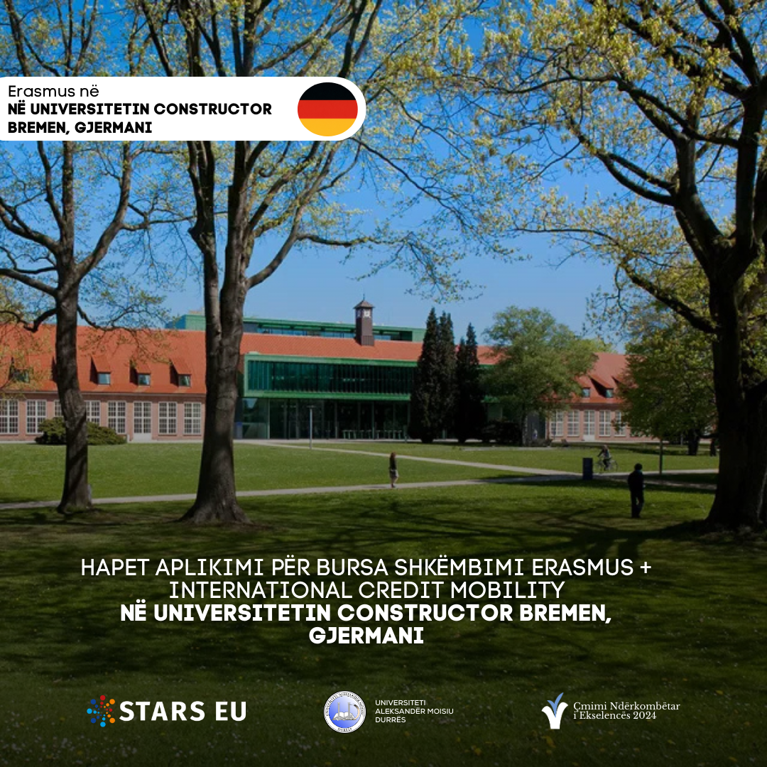 HAPET APLIKIMI PËR BURSA SHKËMBIMI ERASMUS + INTERNATIONAL CREDIT MOBILITY NË UNIVERSITETIN CONSTRUCTOR BREMEN, GJERMANI