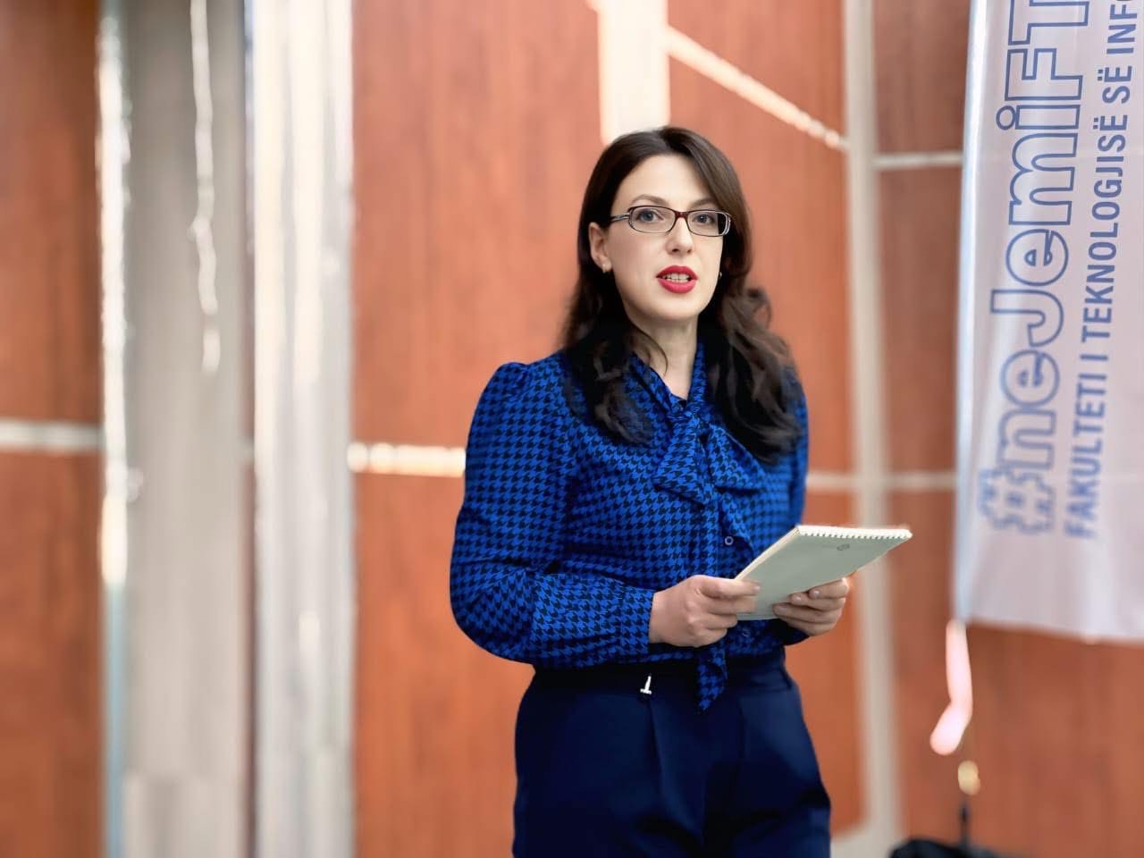 *Prof. Asoc. Dr. Joniada Musaraj – Përgjegjëse e Departamentit të Drejtësisë (FShJP), e cila prezantoi punimin e saj të realizuar së bashku me koleget, Prof. Asoc. Dr. Blerina Muskaj dhe Prof. Asoc. Dr. Edvana Tiri në fushën e juridiksionit.