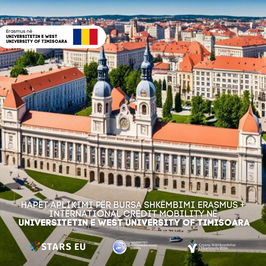 HAPET APLIKIMI PËR BURSA SHKËMBIMI ERASMUS + INTERNATIONAL CREDIT MOBILITY NË UNIVERSITETIN E WEST UNIVERSITY OF TIMISOARA