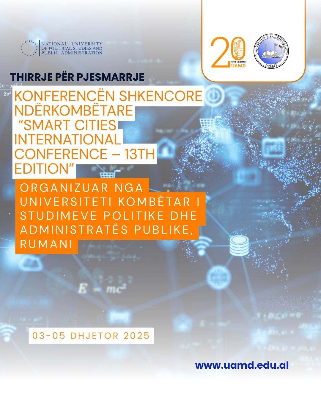 Thirrje për pjesmarrje në Konferencën Shkencore Ndërkombëtare “Smart Cities International Conference – 13th Edition” organizuar nga Universiteti Kombëtar i Studimeve Politike dhe Administratës Publike, Rumani
