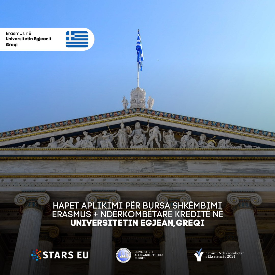 HAPET APLIKIMI PËR BURSA SHKËMBIMI ERASMUS + NDËRKOMBËTARE KREDITË NË UNIVERSITETIN EGJEAN,GREQI