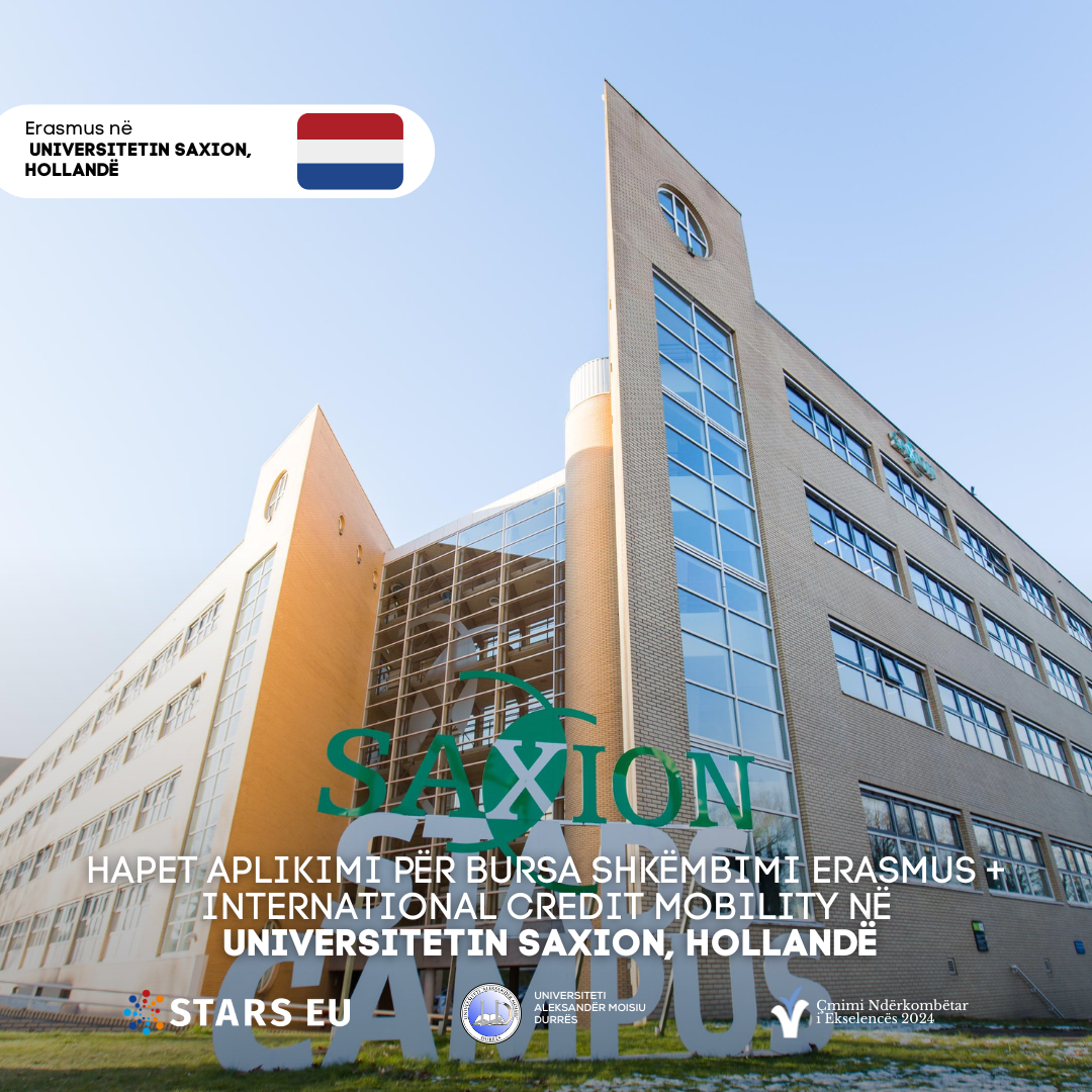 HAPET APLIKIMI PËR BURSA SHKËMBIMI ERASMUS + INTERNATIONAL CREDIT MOBILITY NË UNIVERSITETIN SAXION, HOLLANDË