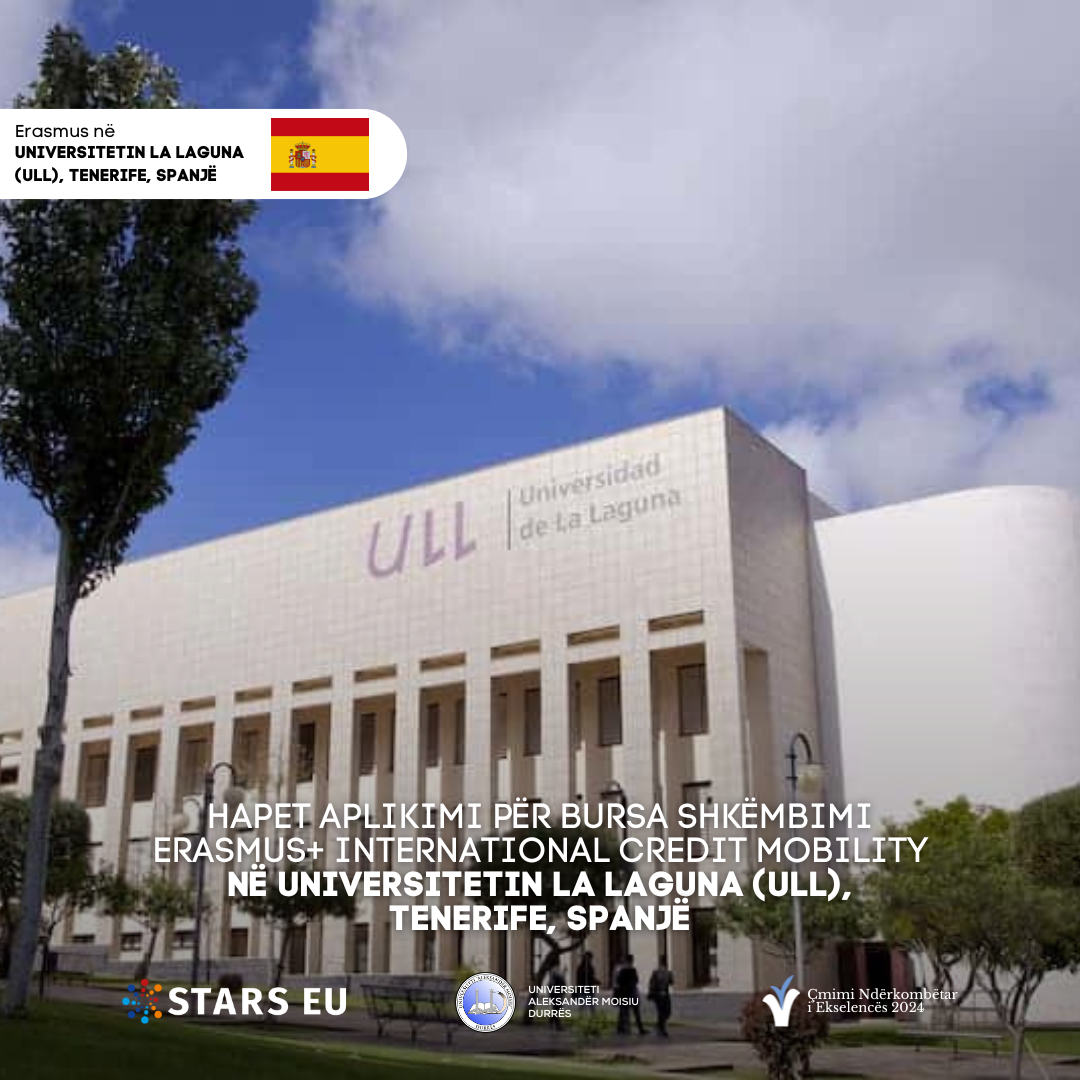 HAPET APLIKIMI PËR BURSA SHKËMBIMI ERASMUS+ INTERNATIONAL CREDIT MOBILITY NË UNIVERSITETIN LA LAGUNA (ULL), TENERIFE, SPANJË