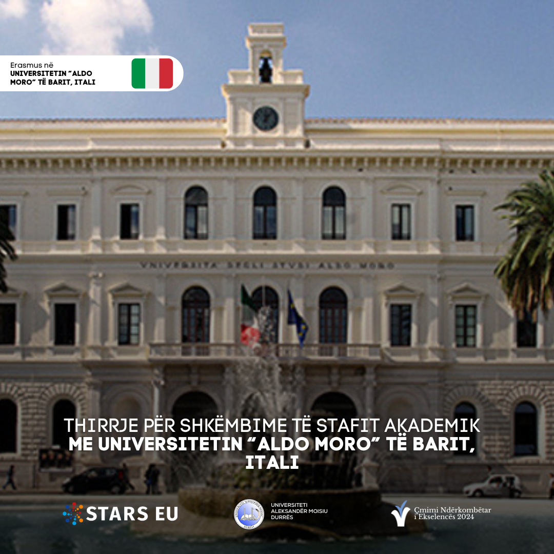 Thirrje për shkëmbime të stafit akademik me Universitetin “Aldo Moro” të Barit, Itali