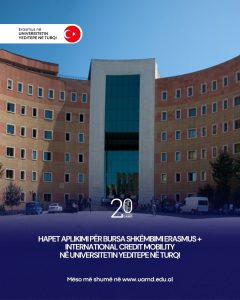Universiteti “Aleksandër Moisiu” Durrës, në kuadër të programit Erasmus+ KA1, ju ofron studentëve bursë të plotë për të zhvilluar semestrin e dytë të vitit akademik 2025 – 2026, në Universitetin Yeditepe, Turqi (Yeditepe Üniversitesi | Atatürk Rönesansını Devam Ettiren Üniversite).