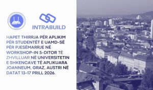 Në kuadër të projektit ndërkombëtar “Cultivating Academic Intrapreneurship in Western Balkans” (IntraBuild) CBHE Erasmus+, ku Universiteti “Aleksandër Moisiu” Durrës është institucion partner, hapet thirrja për aplikim për studentët e UAMD-së për pjesëmarrje në workshop-in 5-ditor të zhvilluar në Universitetin e Shkencave të Aplikuara Joanneum, Graz, Austri në datat 13-17 Prill 2026.