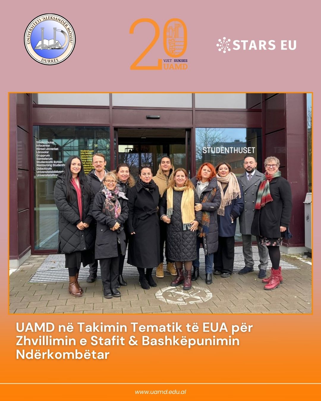 UAMD në Takimin Tematik të EUA për Zhvillimin e Stafit & Bashkëpunimin Ndërkombëtar Më 18 Nëntor 2025, Universiteti “Aleksandër Moisiu” Durrës mori pjesë në takimin e 3-të të EUA Learning & Teaching Thematic Peer Group, organizuar në Linköping University (Suedi), me fokus te zhvillimi profesional i stafit akademik dhe bashkëpunimi transnacional.