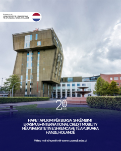 Në kuadër të programit Erasmus+ International Credit Mobility, të nënshkruar ndërmjet Universitetit të Shkencave të Aplikuara Hanze në Holandë dhe Universitetit “Aleksandër Moisiu” Durrës, hapet thirrja për aplikim për studentët në nivelin Bachelor.
