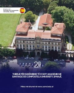 Universiteti “Aleksandër Moisiu” Durrës, në kuadër të programit Erasmus+ KA171, i ofron stafit akademik mundësinë për të zhvilluar një javë mësimdhënie në Universitetin e Santiago de Compostela, Spanjë. (https://www.usc.gal/
