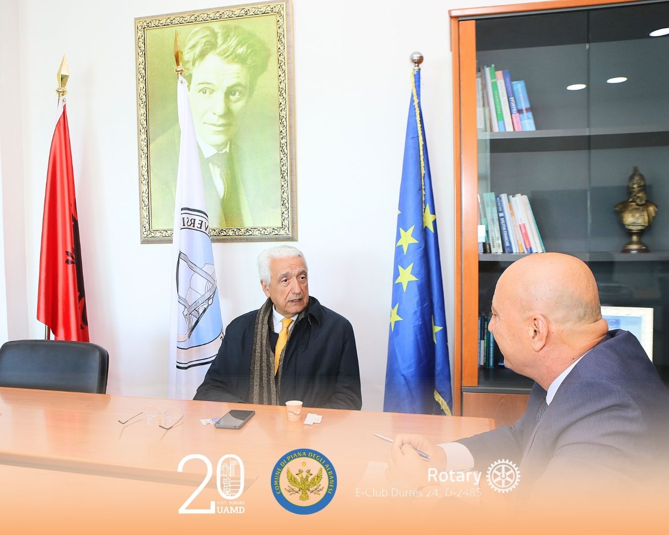Gjatë takimit u diskutua mbi implementimin e marrëveshjes së nënshkruar së fundmi midis UAMD, Komunës Piana degli Albanesi dhe Rotary E-Club Durrës, 24, e miratuar nga Këshilli Bashkiak i komunës arbëreshe, për ndjekjen e studimeve në universitetin tonë nga studentët arbëreshë, një hap historik për forcimin e lidhjeve kulturore, historike dhe patriotike mes UAMD dhe komunitetit arbëresh në Itali.